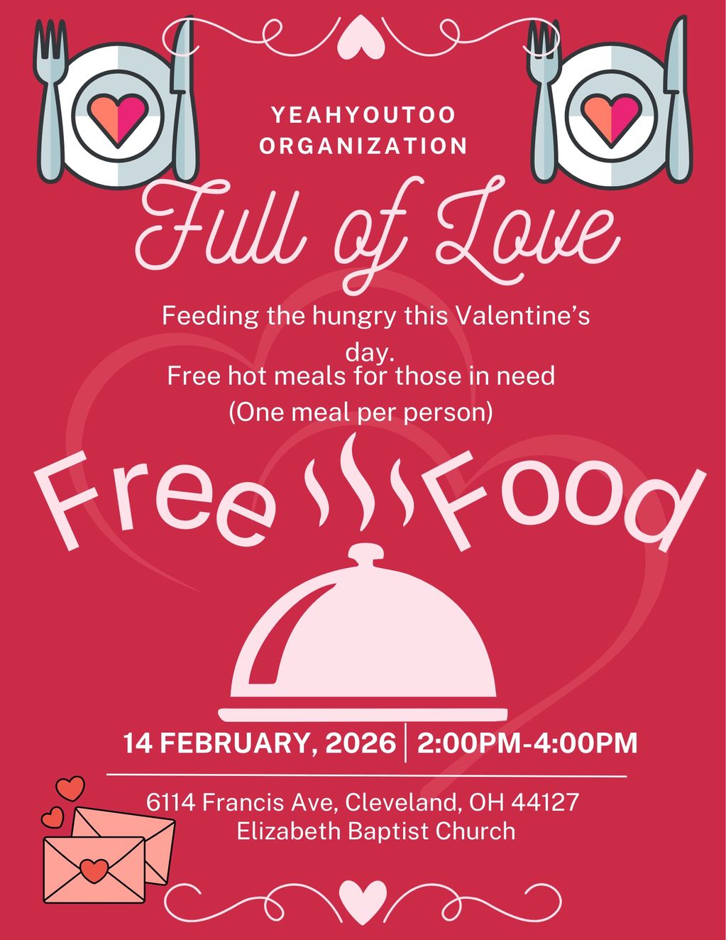 Welcome to YEAH YOU TOO organization! We are serving free food to those in need this Valentine's Day! Please click the button below to learn more!